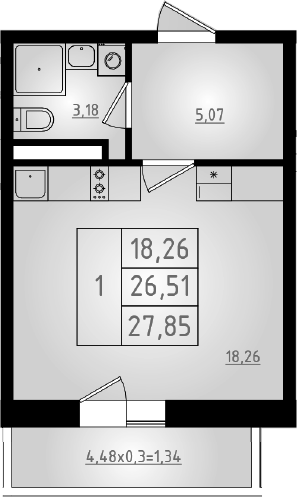 Общая площадь: 27.85м2