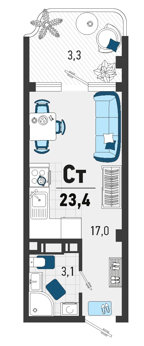 Квартира этаж 2, площадь 23.40 м2