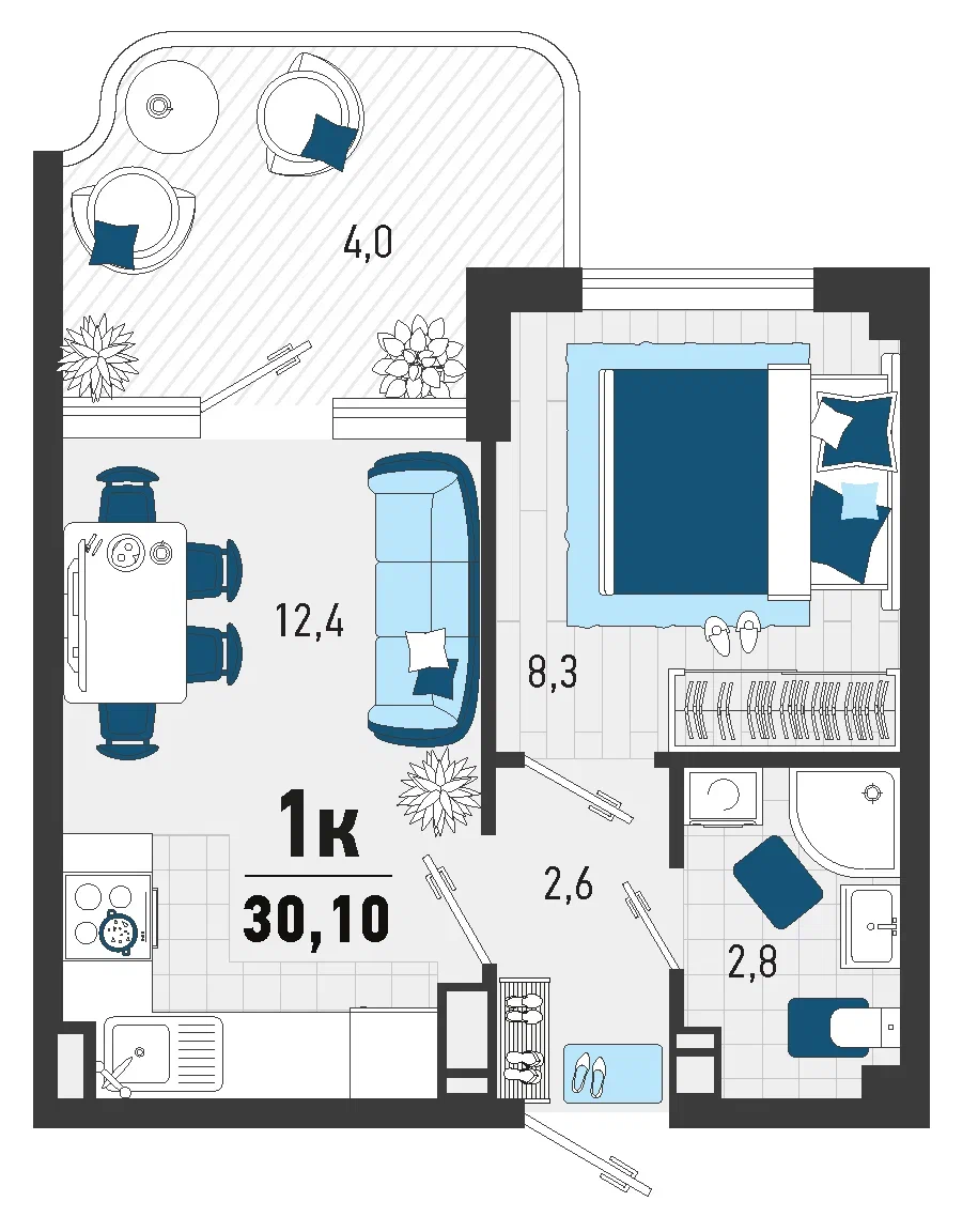 Квартира этаж 1, площадь 30.10 м2