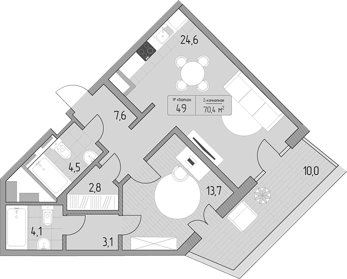 Общая площадь: 70.40м2