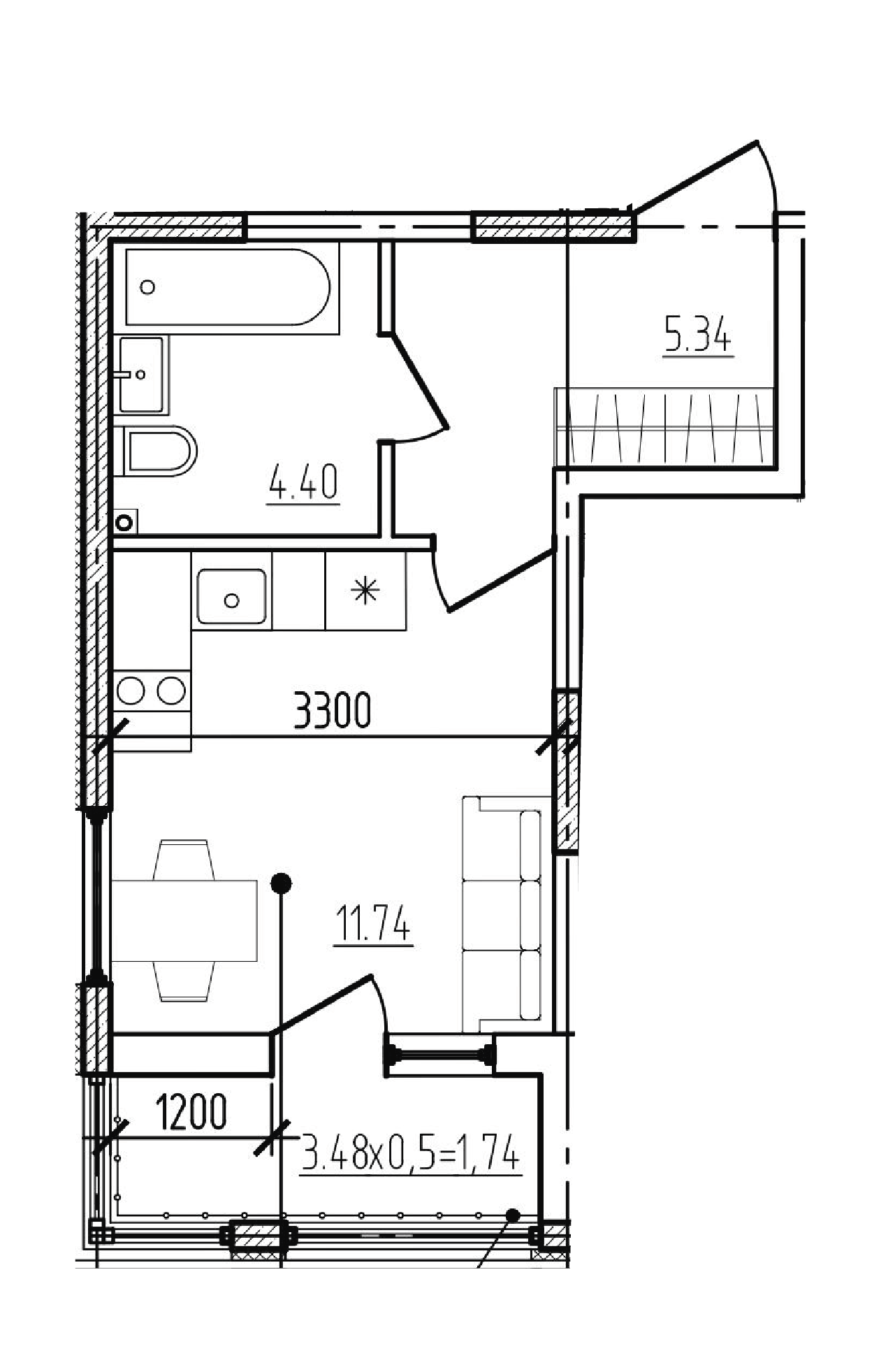 Квартира этаж 1, площадь 23.22 м2