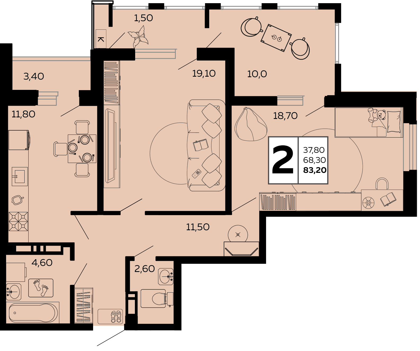 Общая площадь: 83.20м2