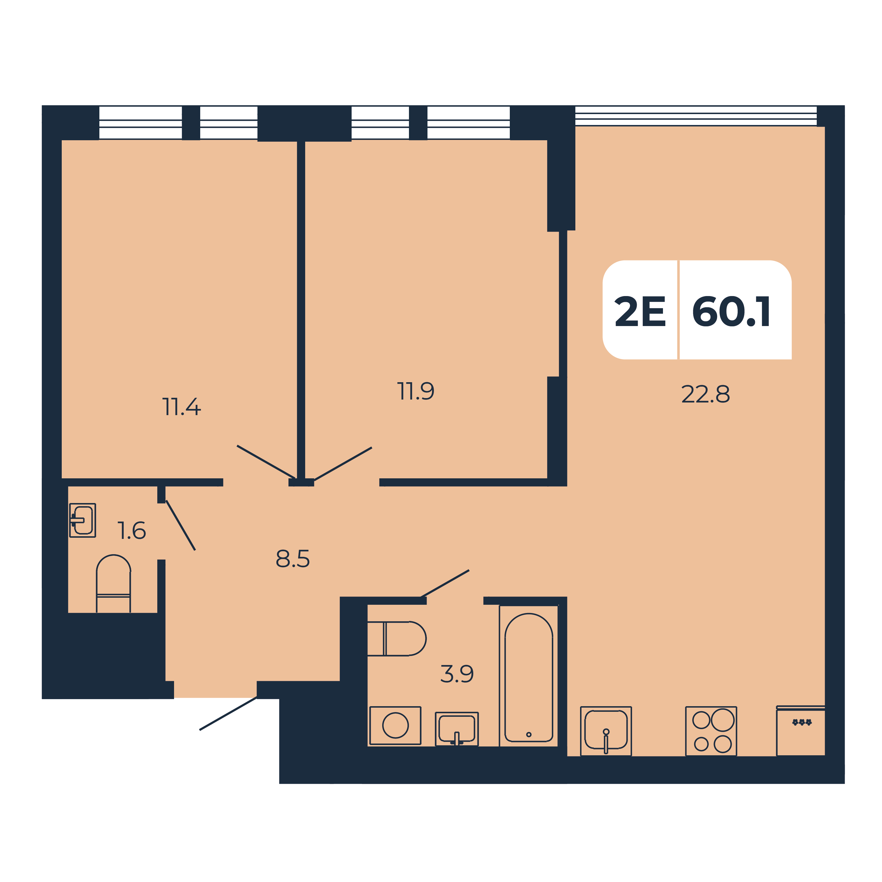 Квартира этаж 2, площадь 60.10 м2