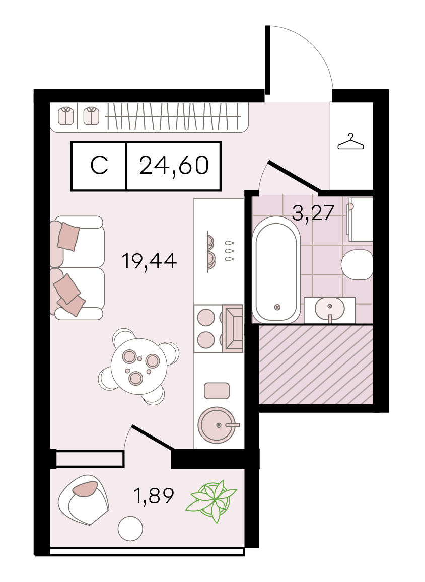Общая площадь: 24.60м2