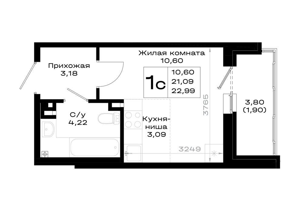 Общая площадь: 22.99м2