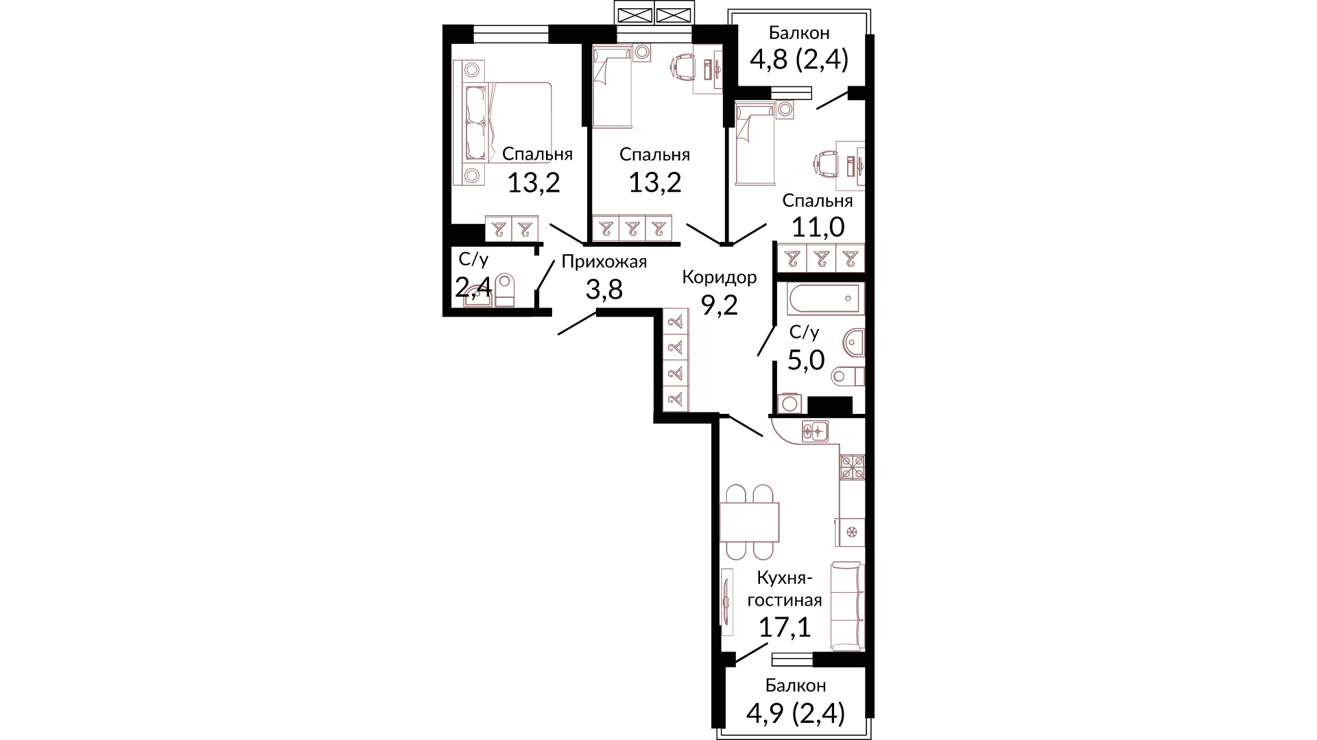 Общая площадь: 79.80м2