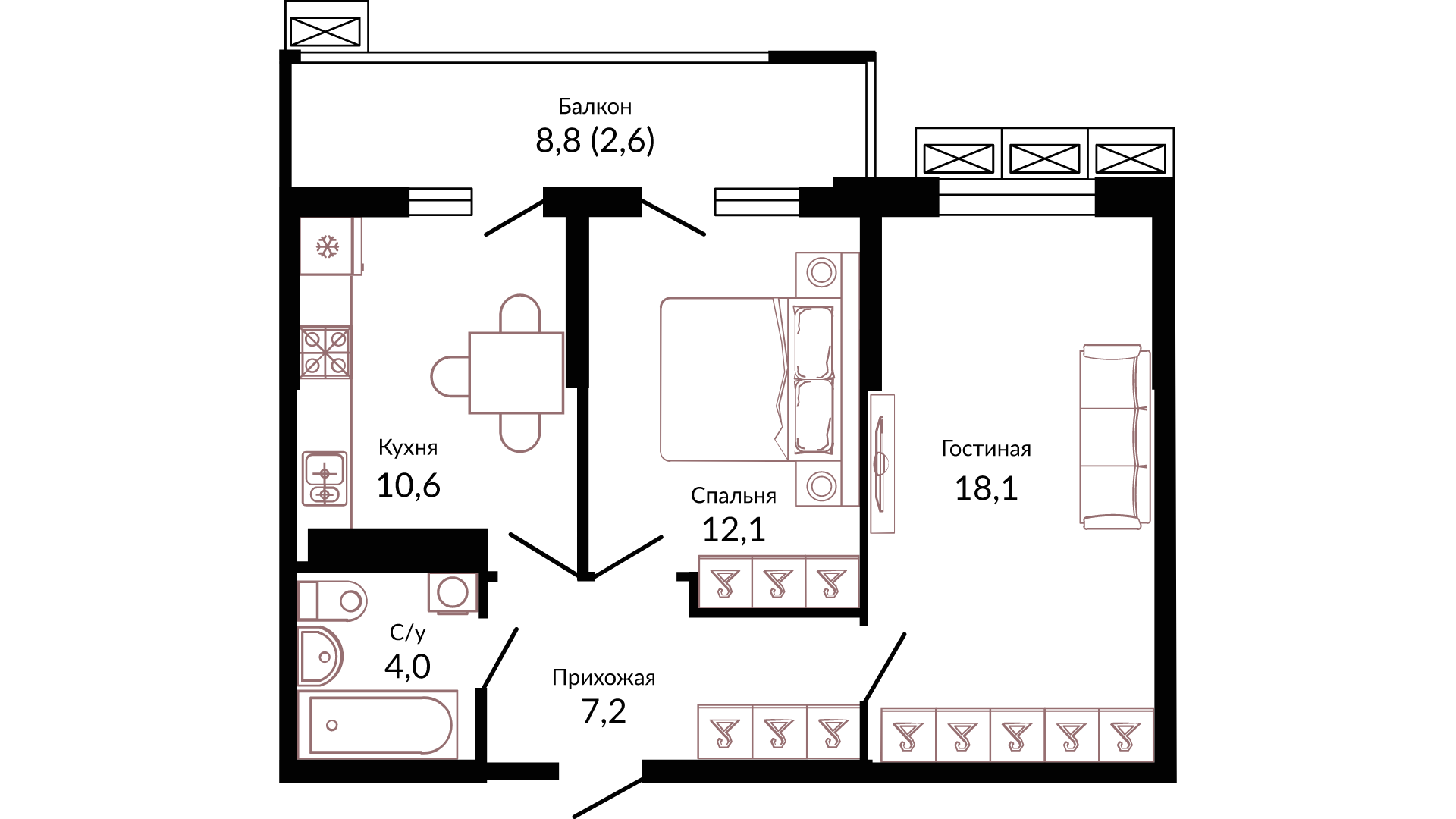 Высота потолков: 2.7м