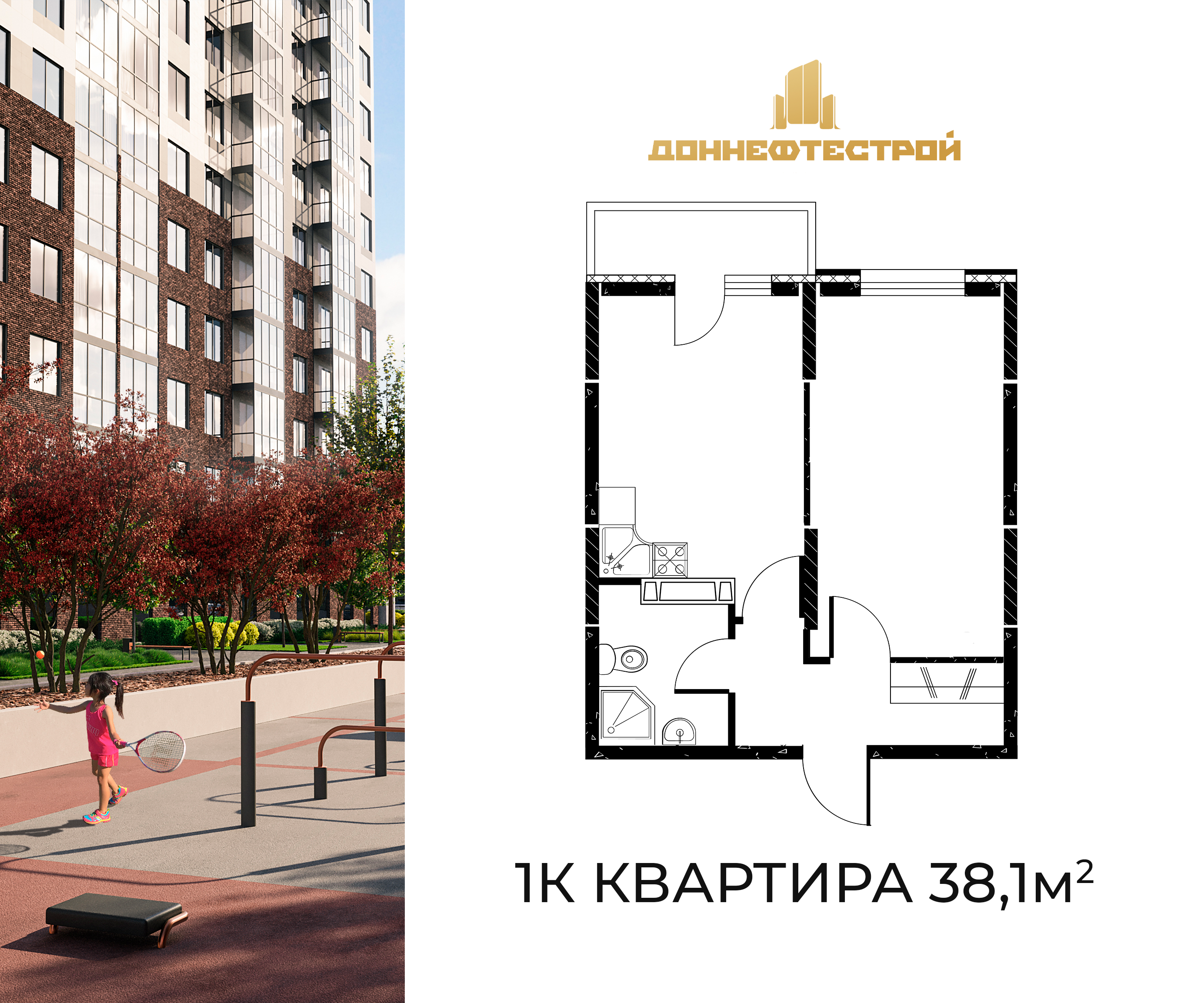 Квартира этаж 25, площадь 38.10 м2
