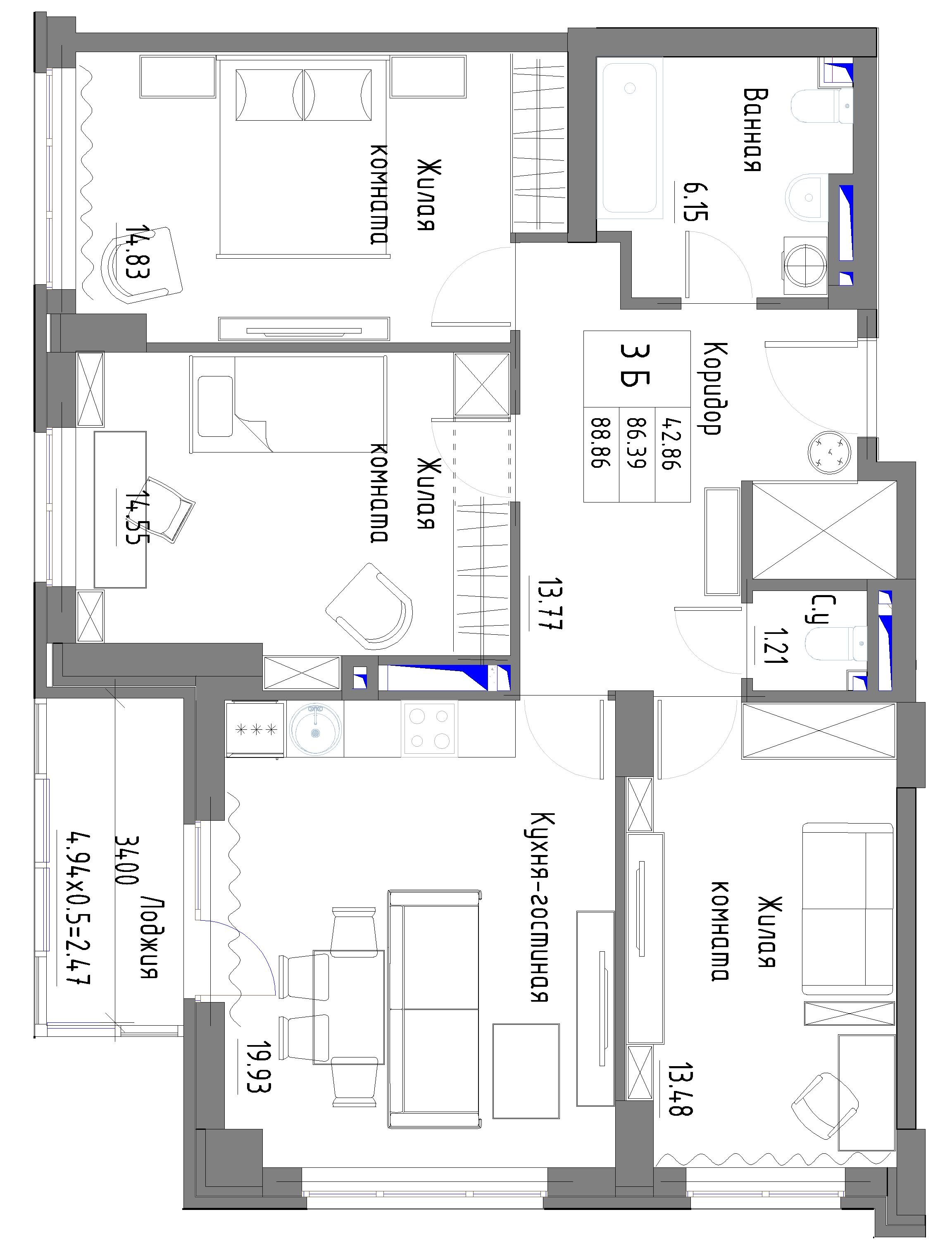 Общая площадь: 89.67м2