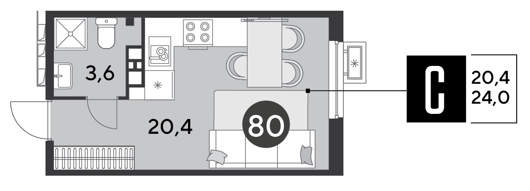 Квартира этаж 6, площадь 24.00 м2