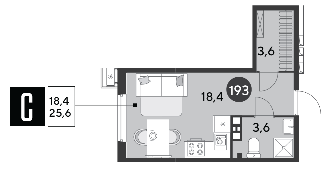 Квартира этаж 6, площадь 25.60 м2