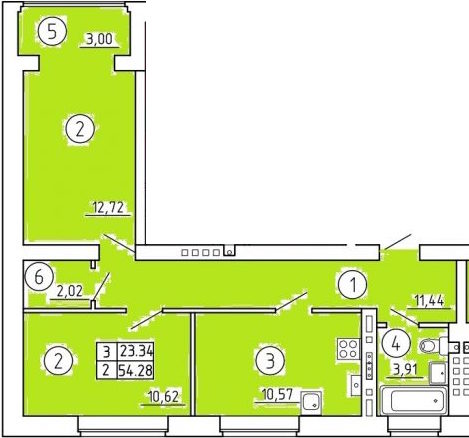 Общая площадь: 54.28м2