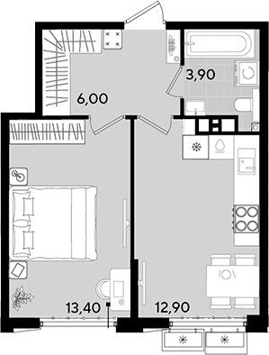 Квартира этаж 18, площадь 36.20 м2