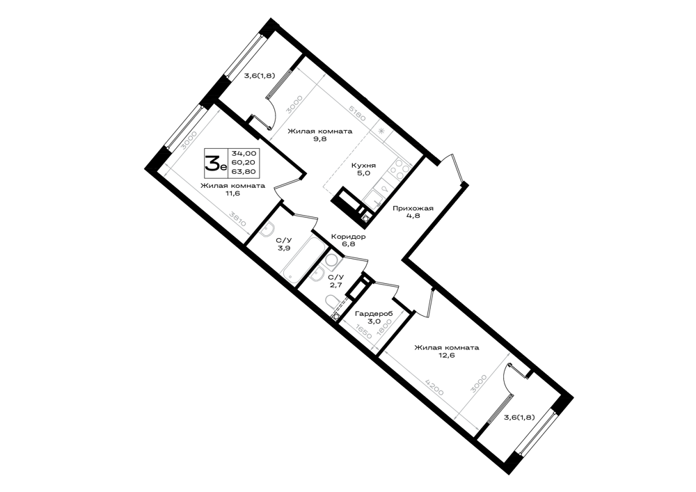 Общая площадь: 63.80м2