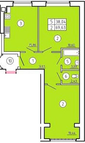 Квартира этаж 3, площадь 63.63 м2