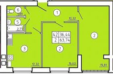 Квартира этаж 1, площадь 63.74 м2