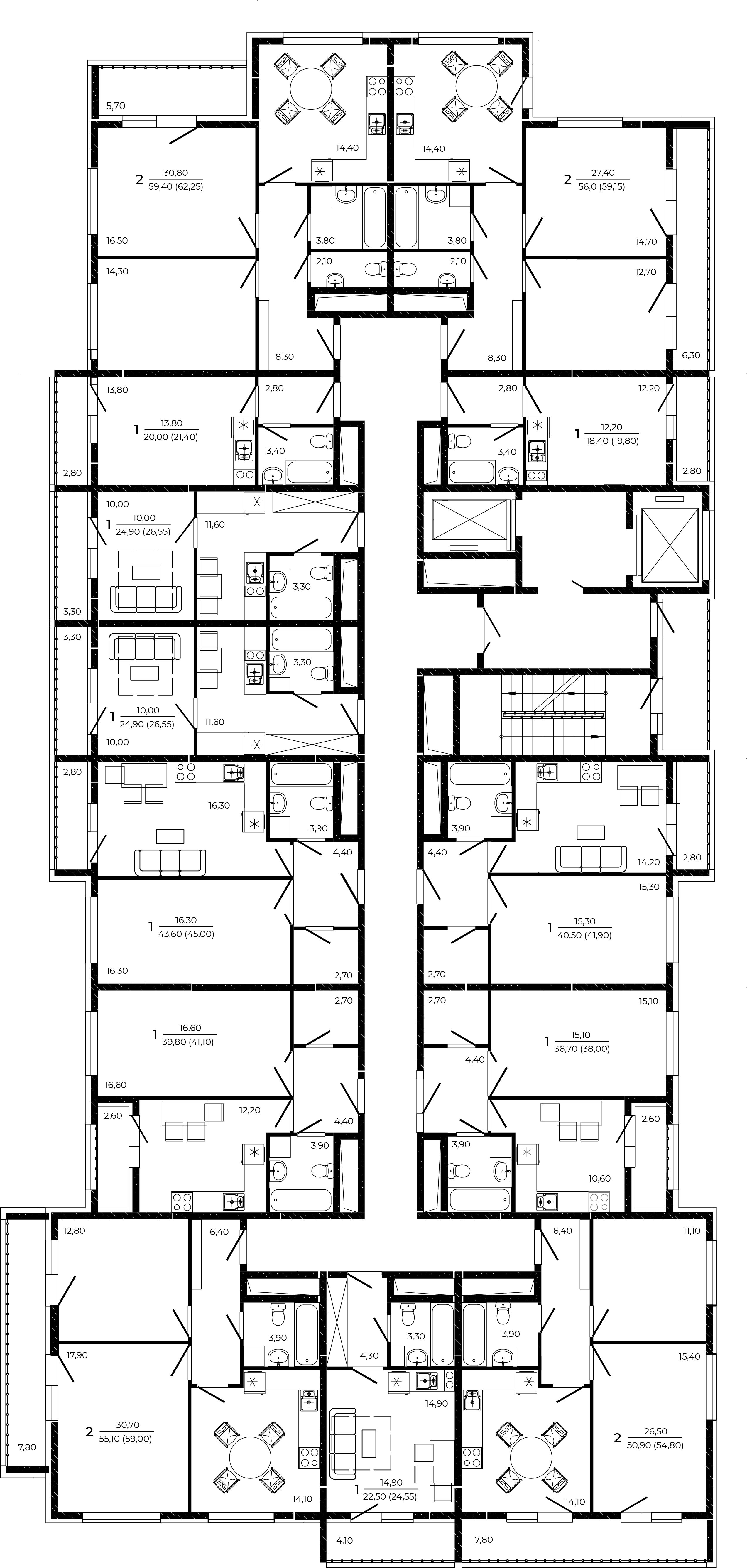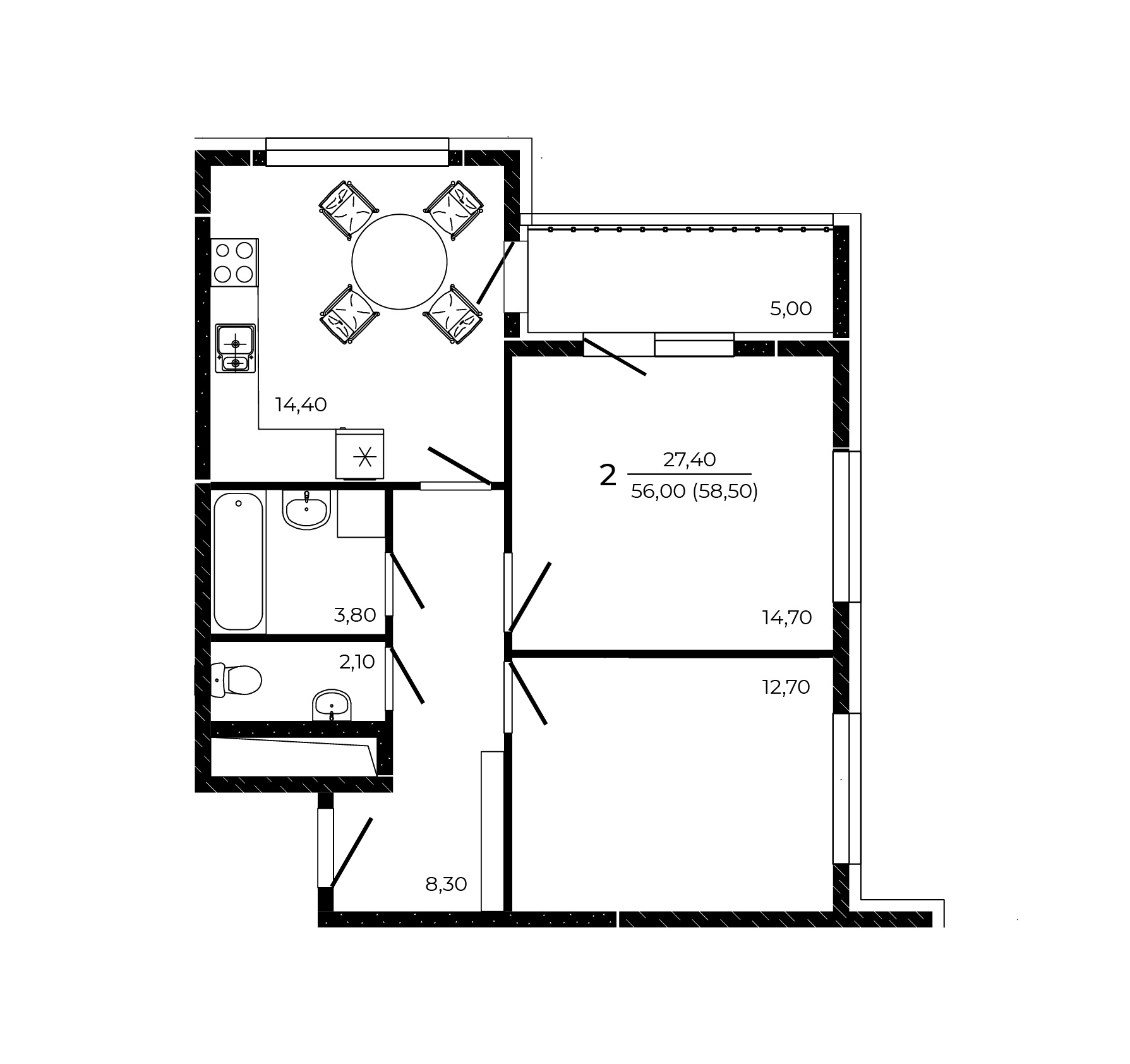 Квартира этаж 2, площадь 58.50 м2