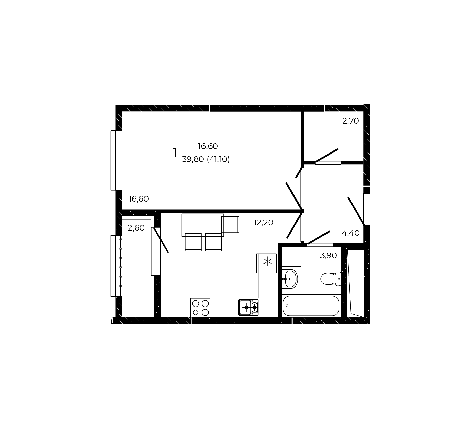 Общая площадь: 41.10м2