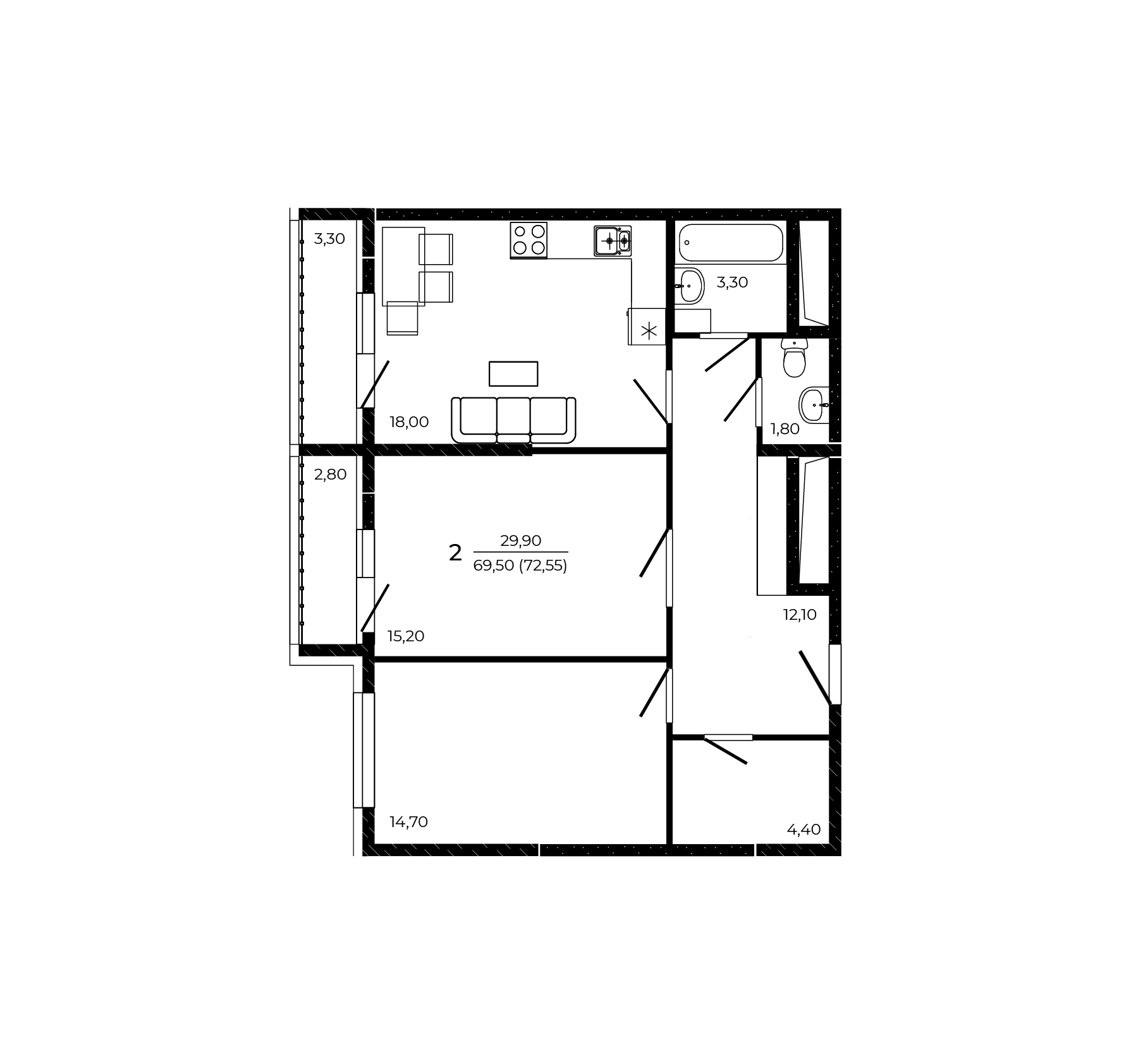 Общая площадь: 72.55м2