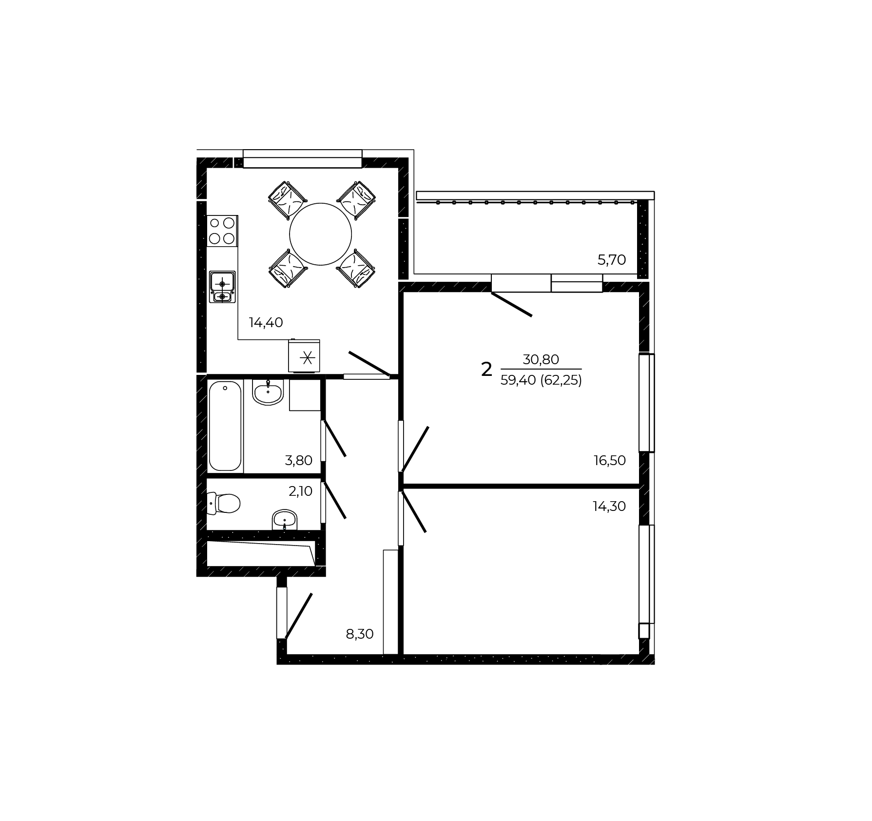 Общая площадь: 62.25м2