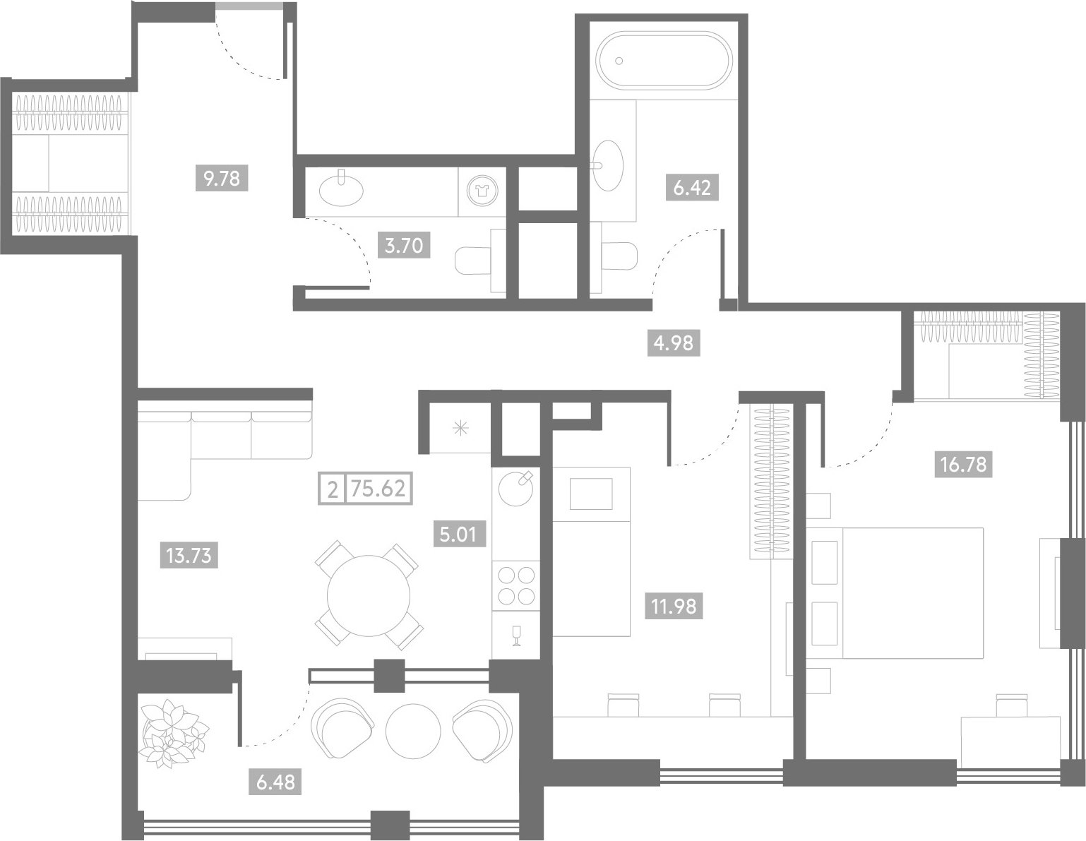 Общая площадь: 75.62м2