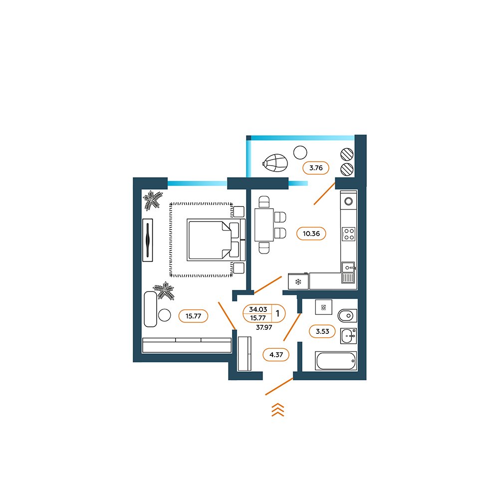 Квартира этаж 10, площадь 38.50 м2