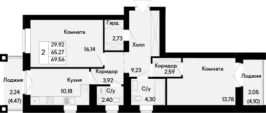 Общая площадь: 69.56м2