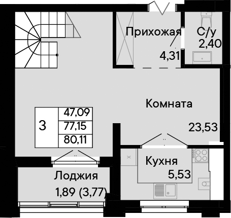 Общая площадь: 80.11м2