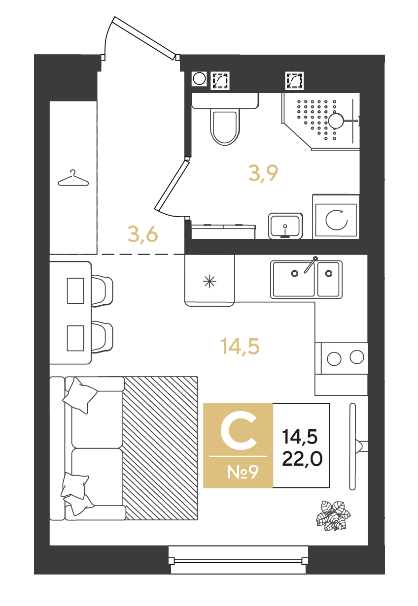 Общая площадь: 22.00м2