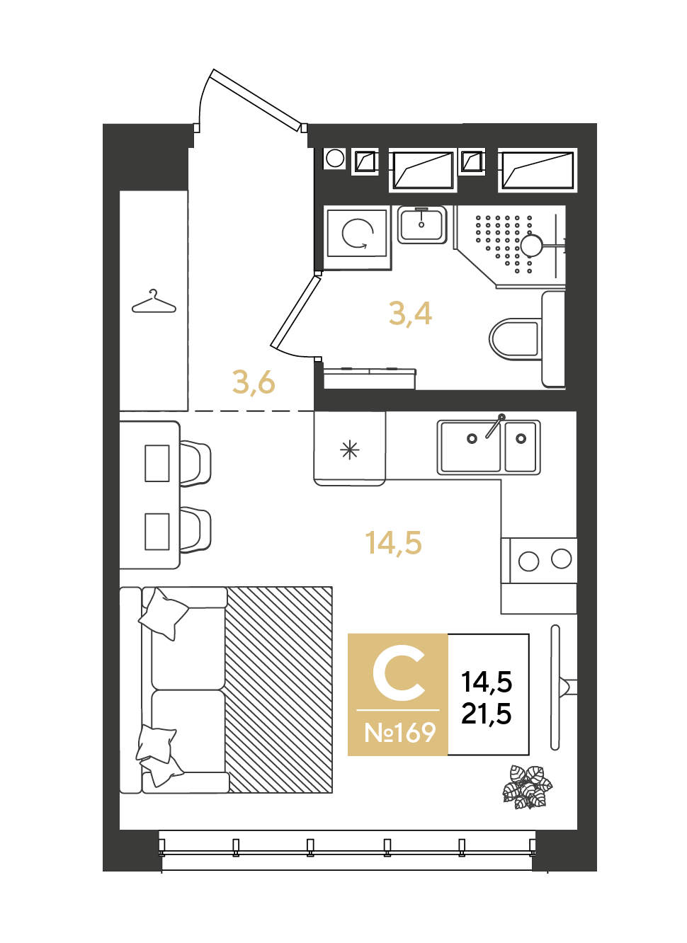 Квартира этаж 10, площадь 21.50 м2