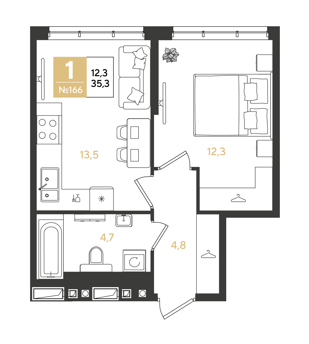 Квартира этаж 15, площадь 35.30 м2