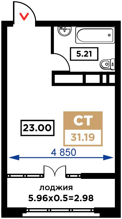 Квартира этаж 5, площадь 31.19 м2