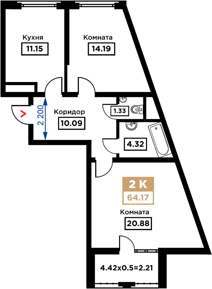 Общая площадь: 64.17м2