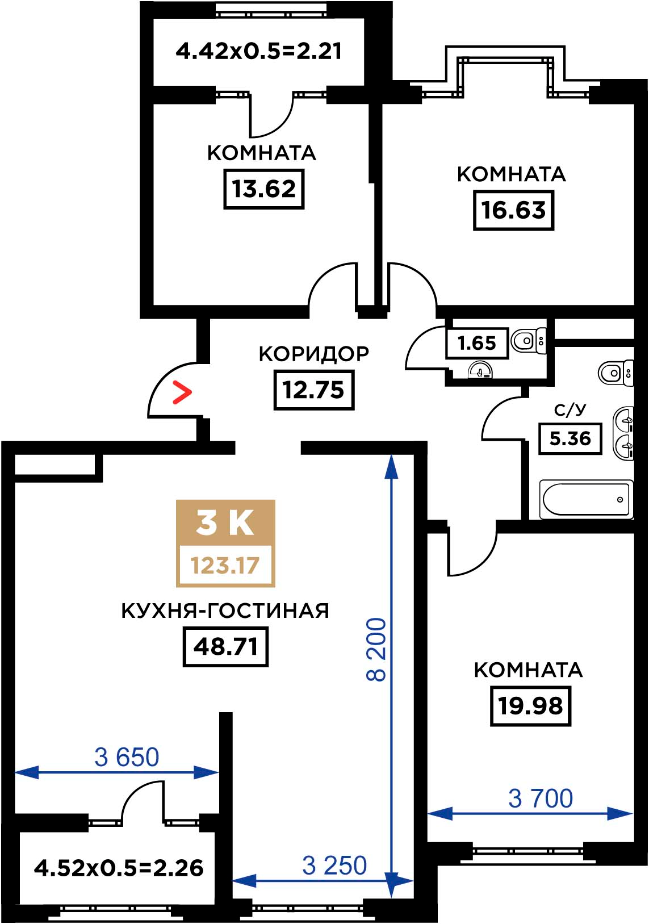Общая площадь: 123.17м2