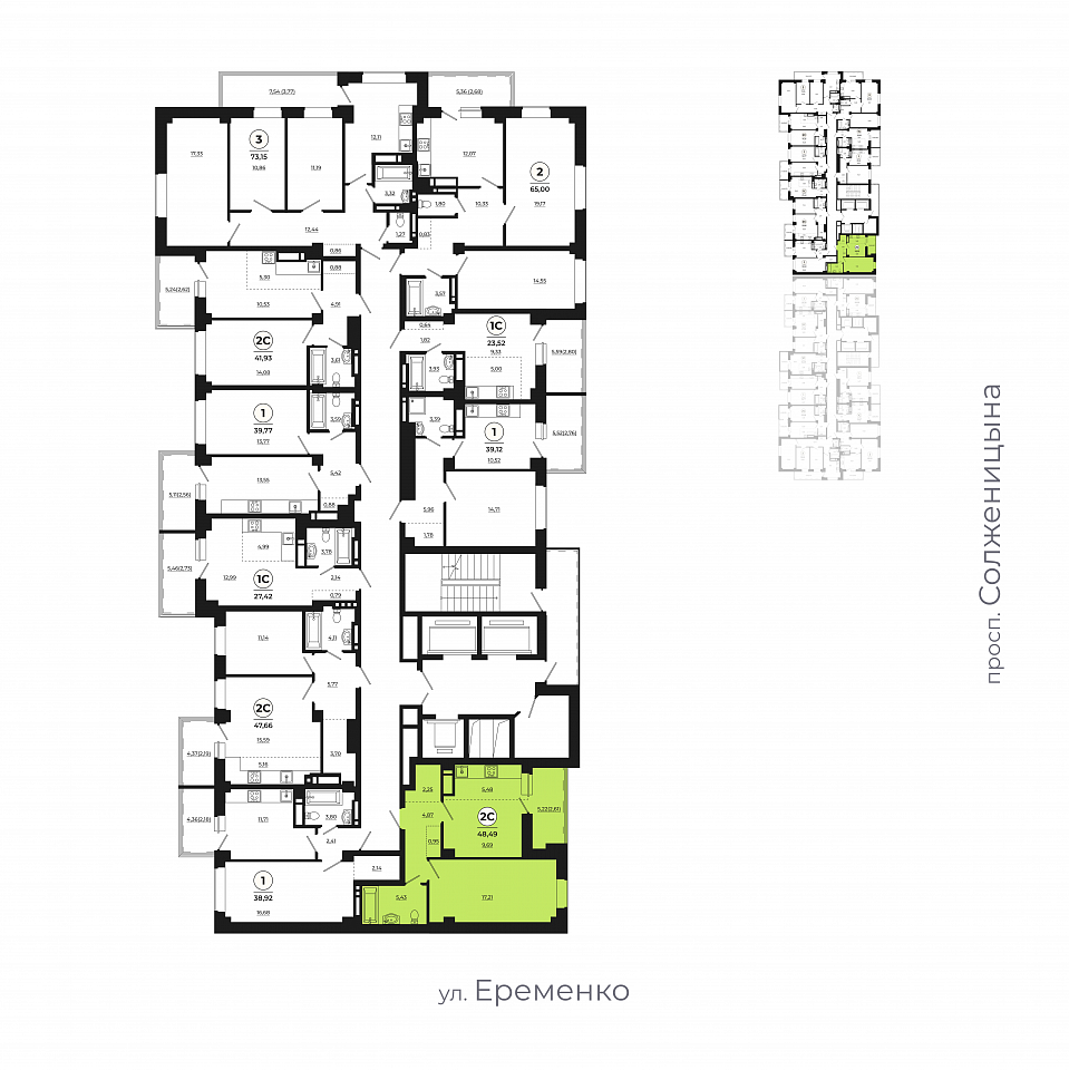 Квартира этаж 16, площадь 48.17 м2