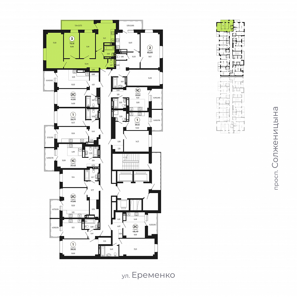 Квартира этаж 17, площадь 72.74 м2