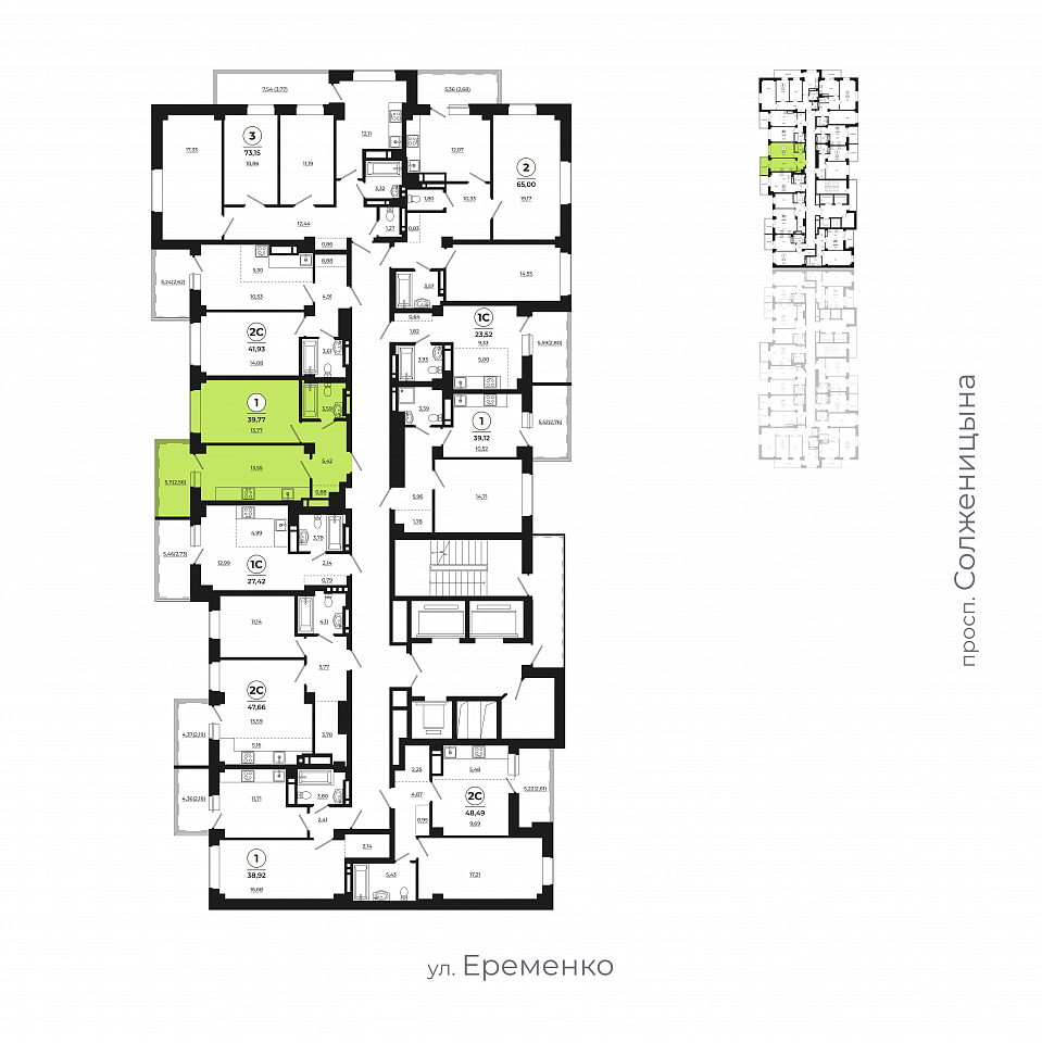 Квартира этаж 23, площадь 39.45 м2