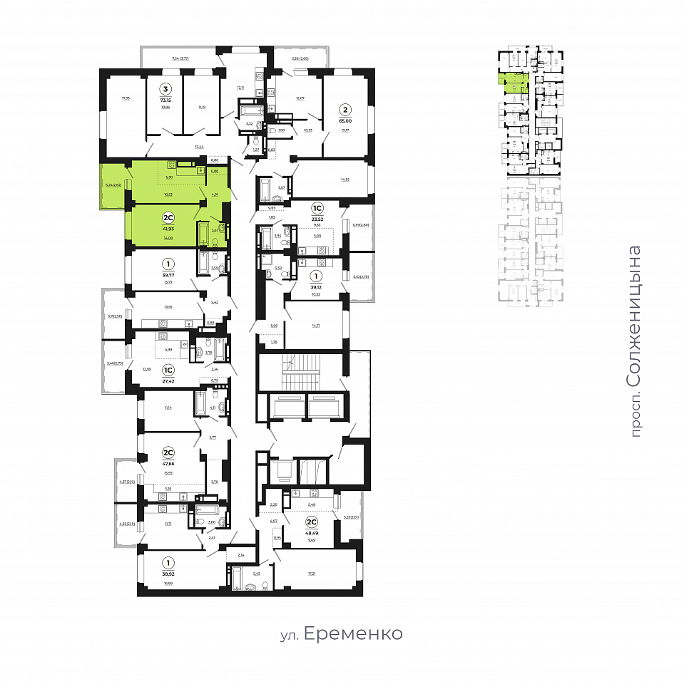 Квартира этаж 24, площадь 41.55 м2