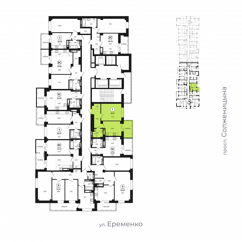 Общая площадь: 39.12м2