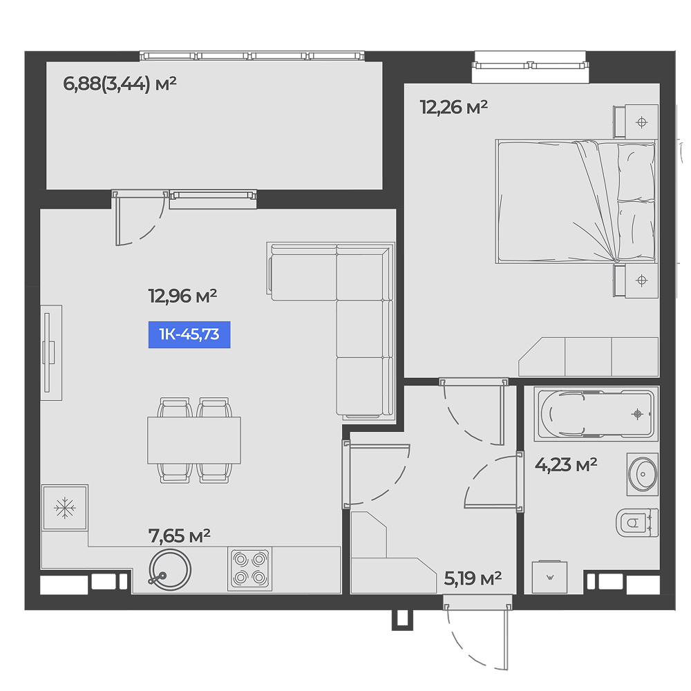 Общая площадь: 45.73м2