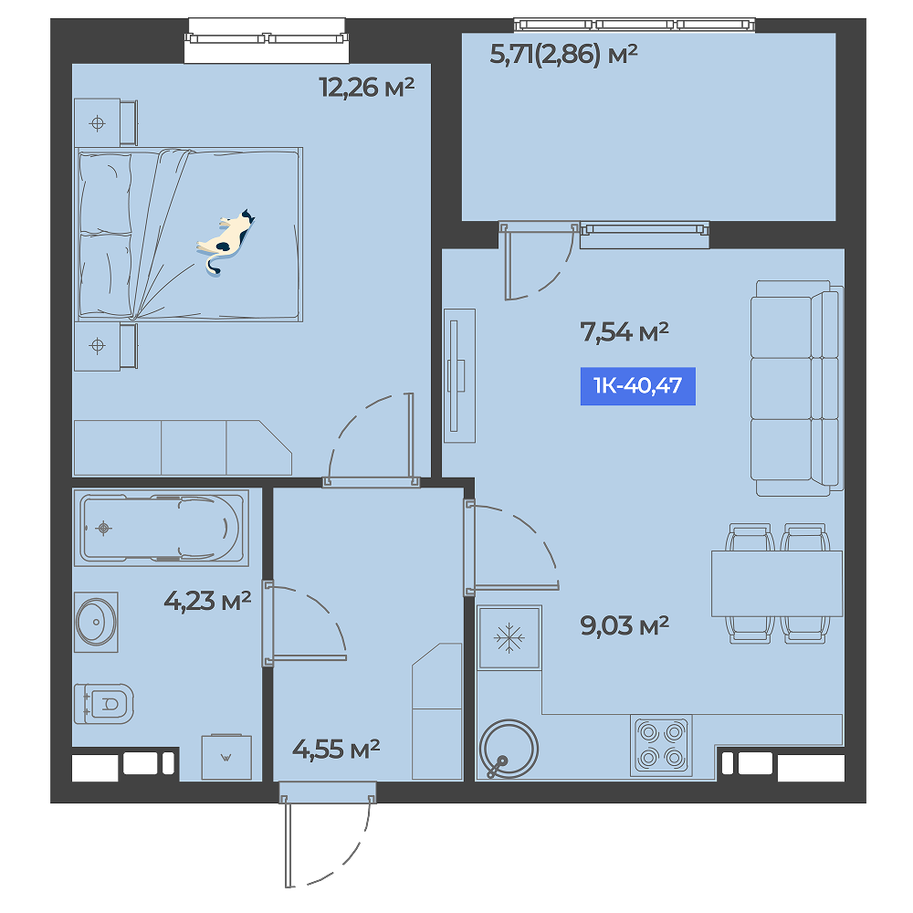 Общая площадь: 40.47м2