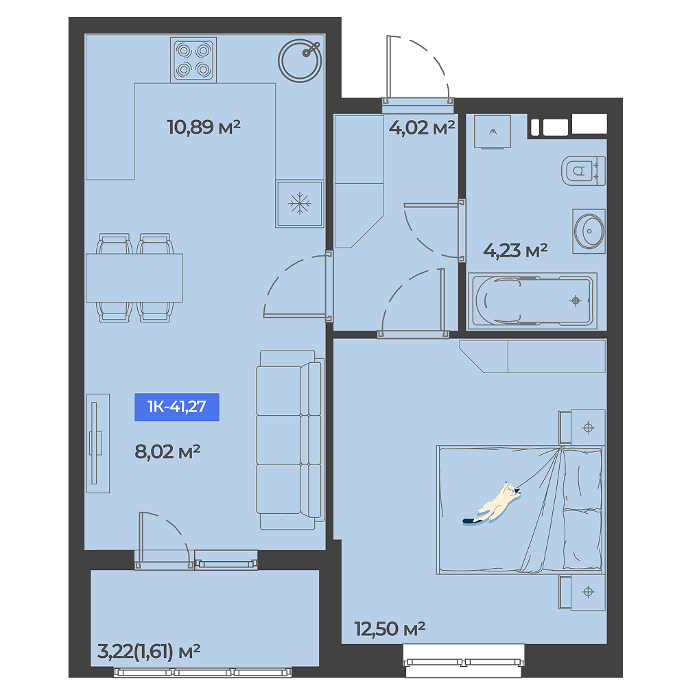 Общая площадь: 41.27м2