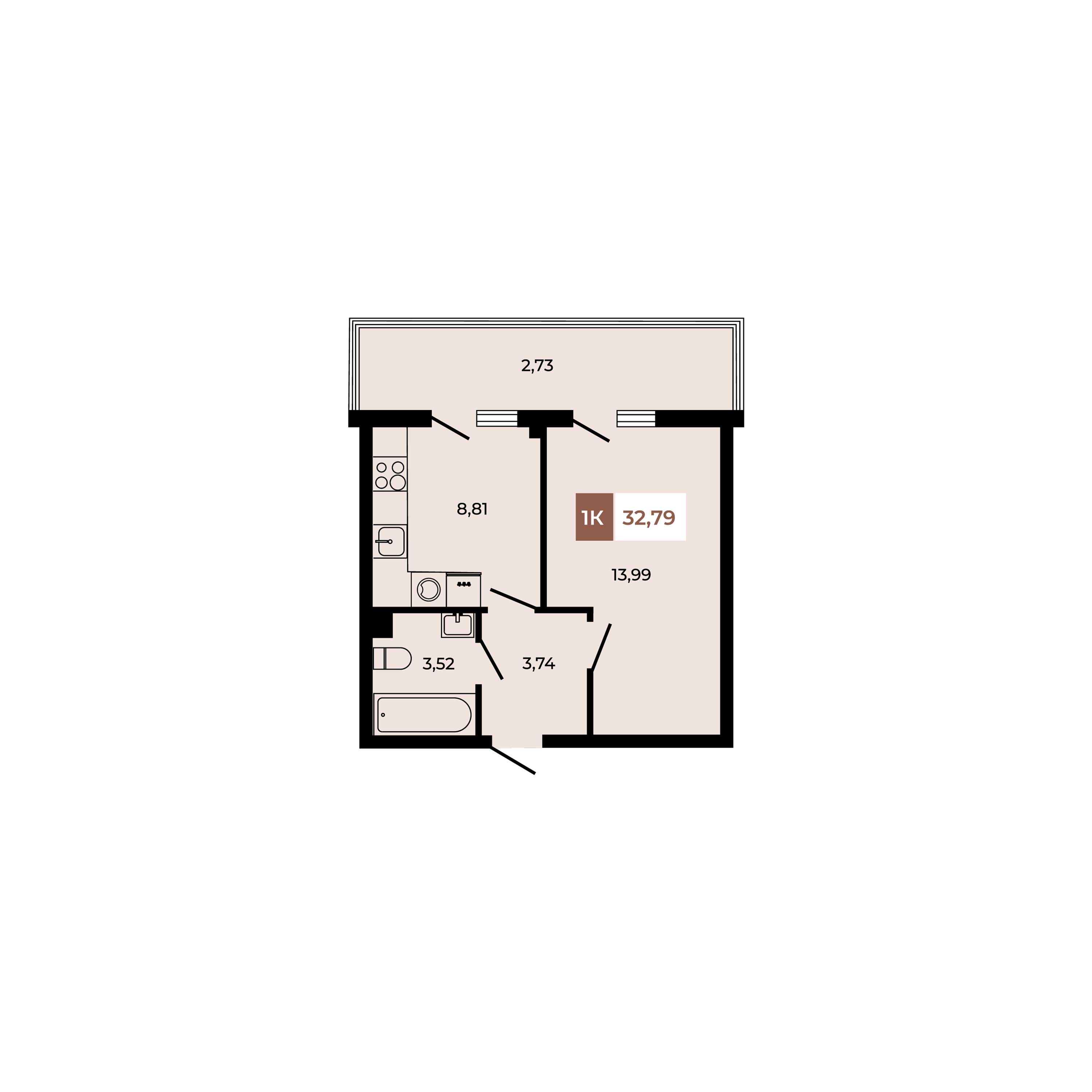 Квартира этаж 1, площадь 32.79 м2
