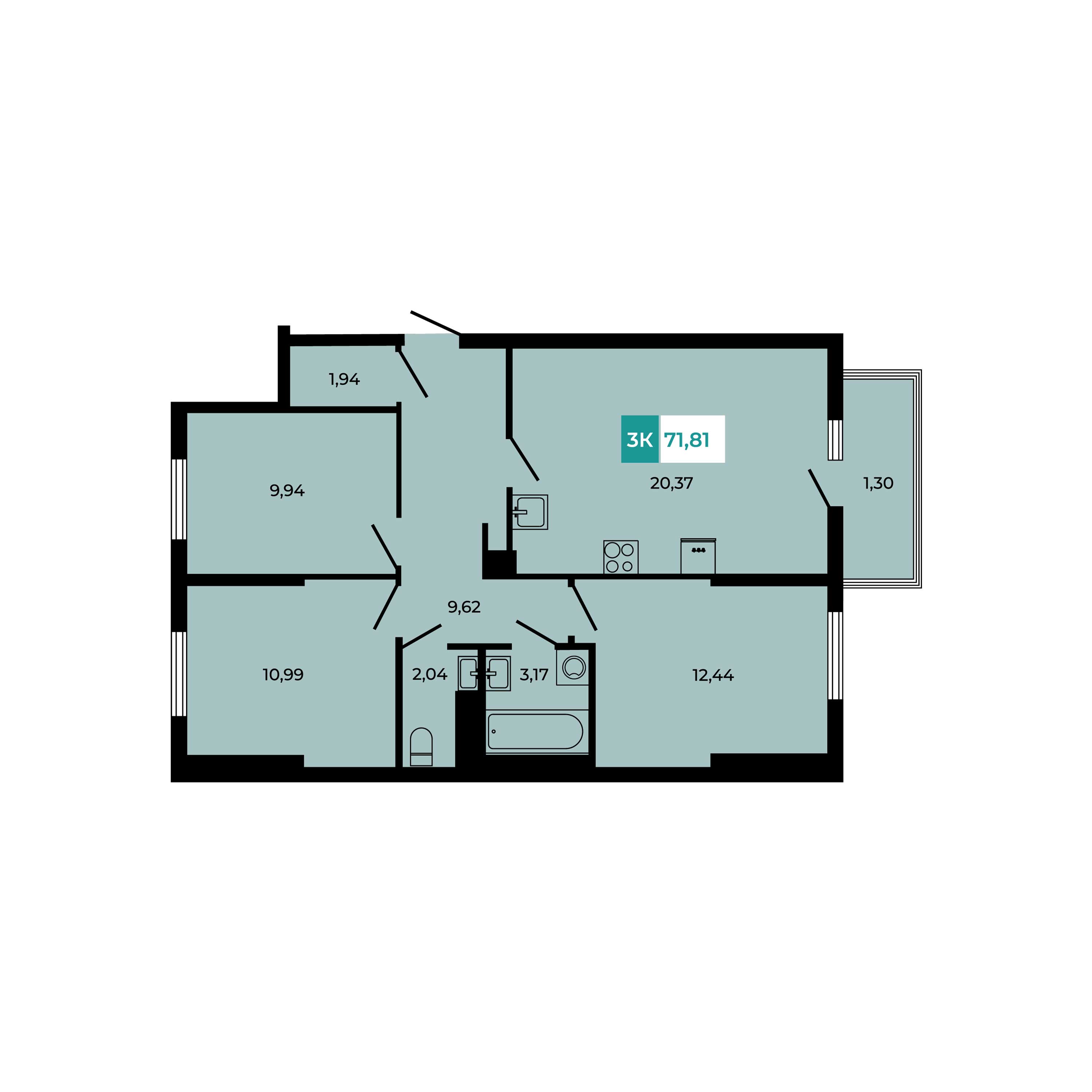 Общая площадь: 71.81м2