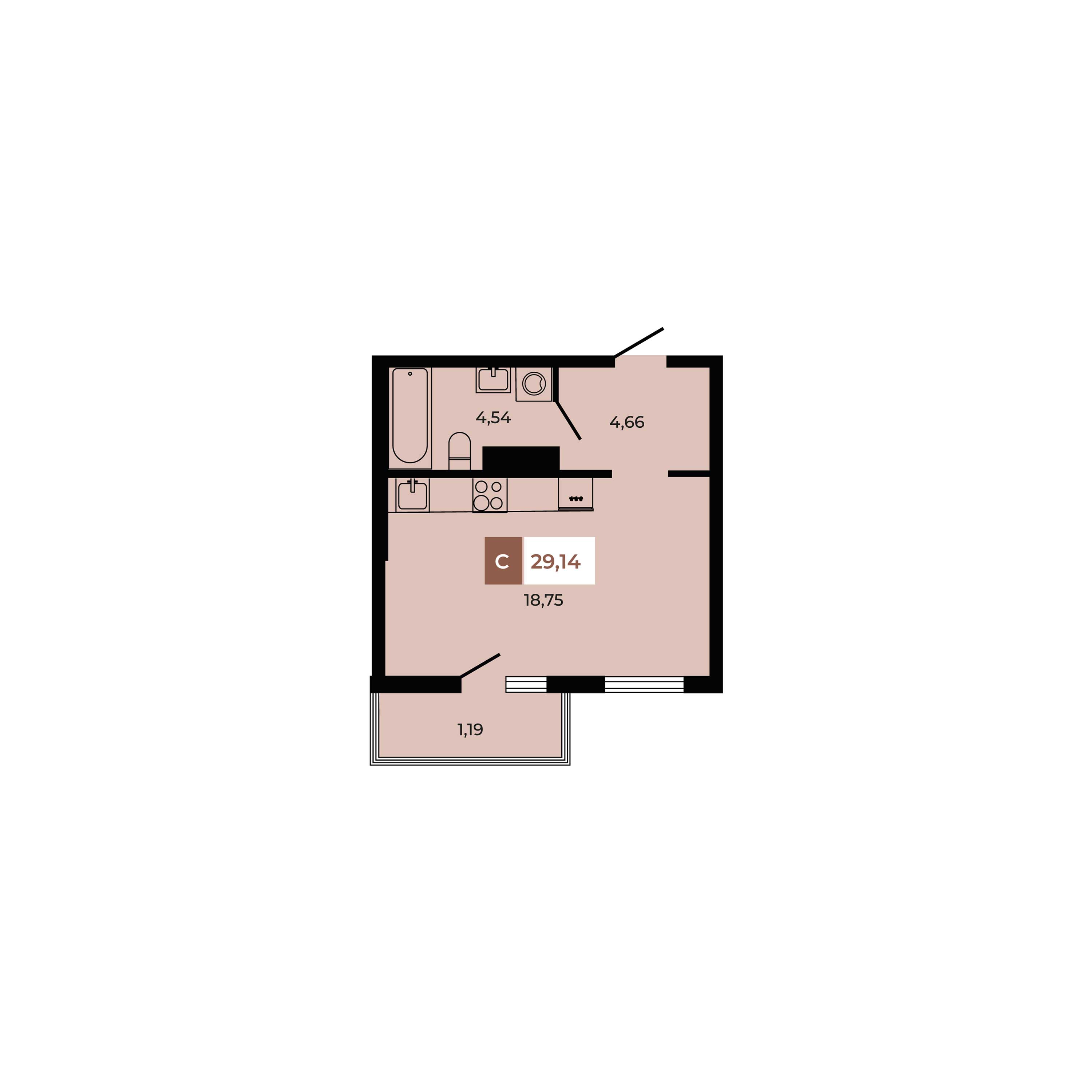 Общая площадь: 29.14м2