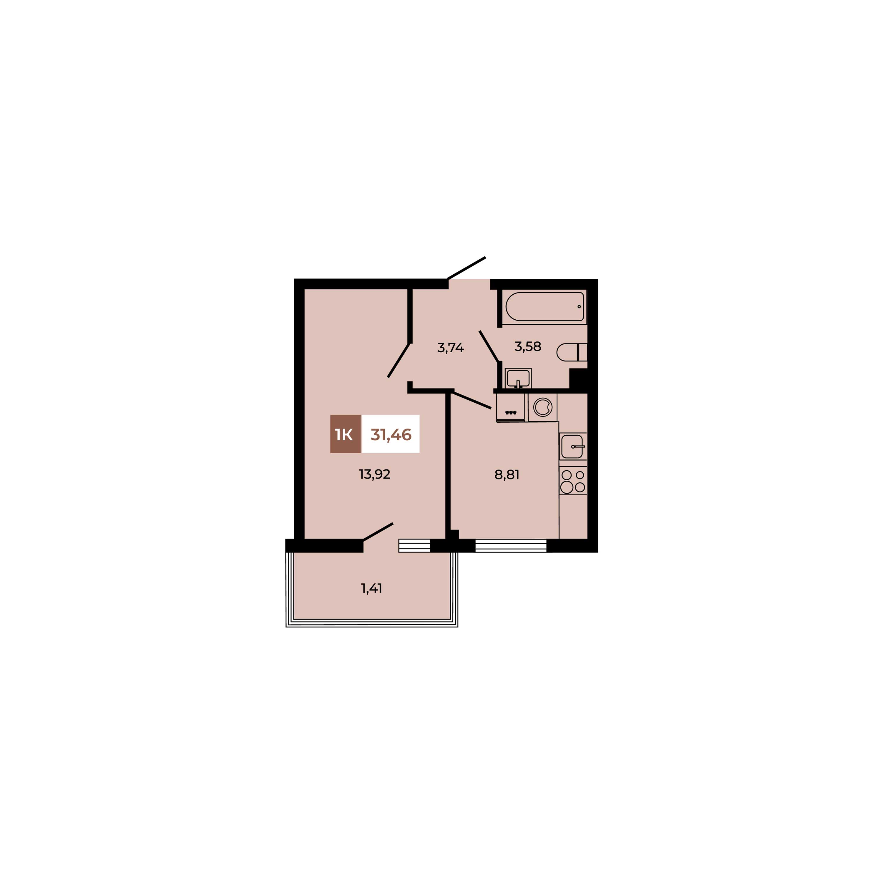 Общая площадь: 31.46м2