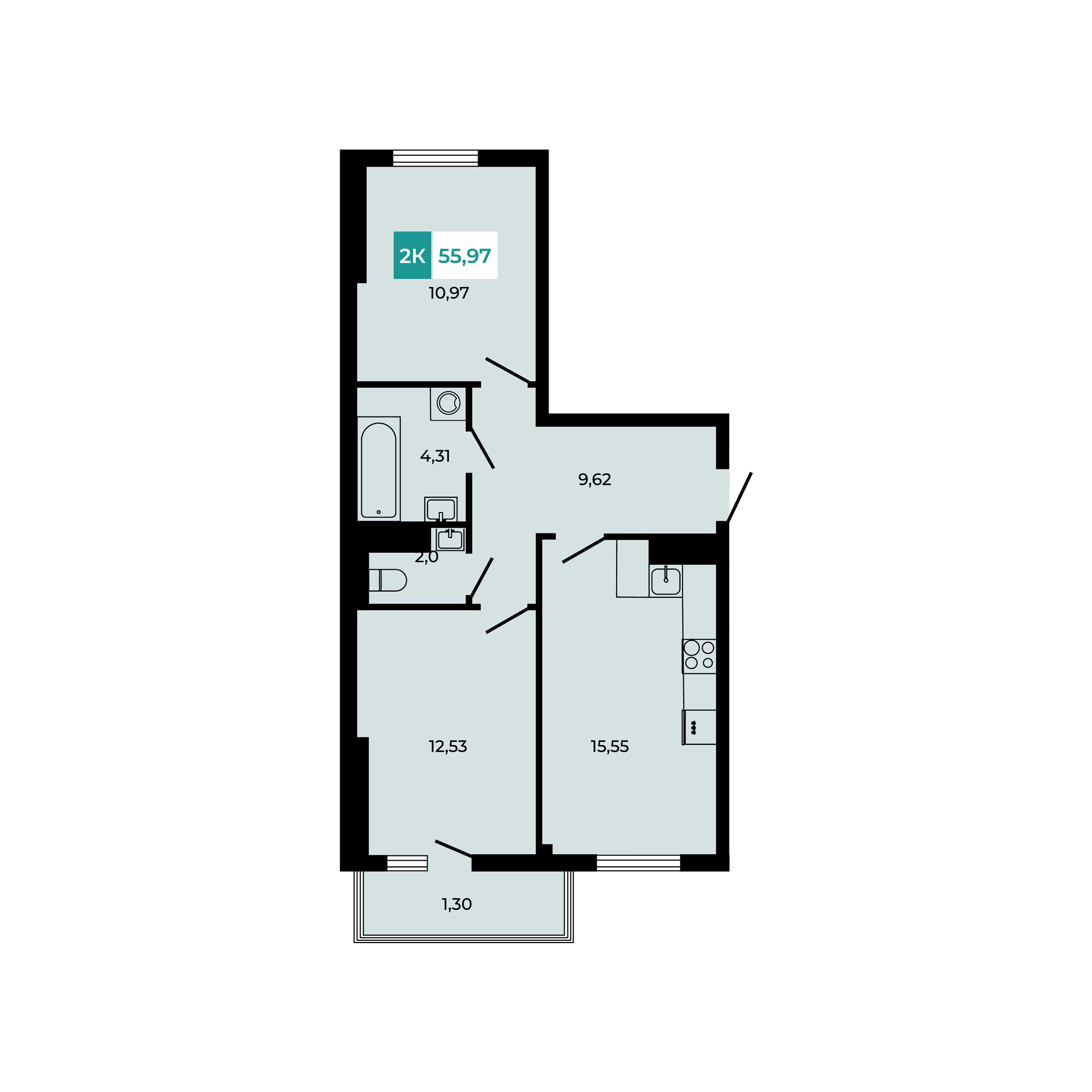 Общая площадь: 55.97м2