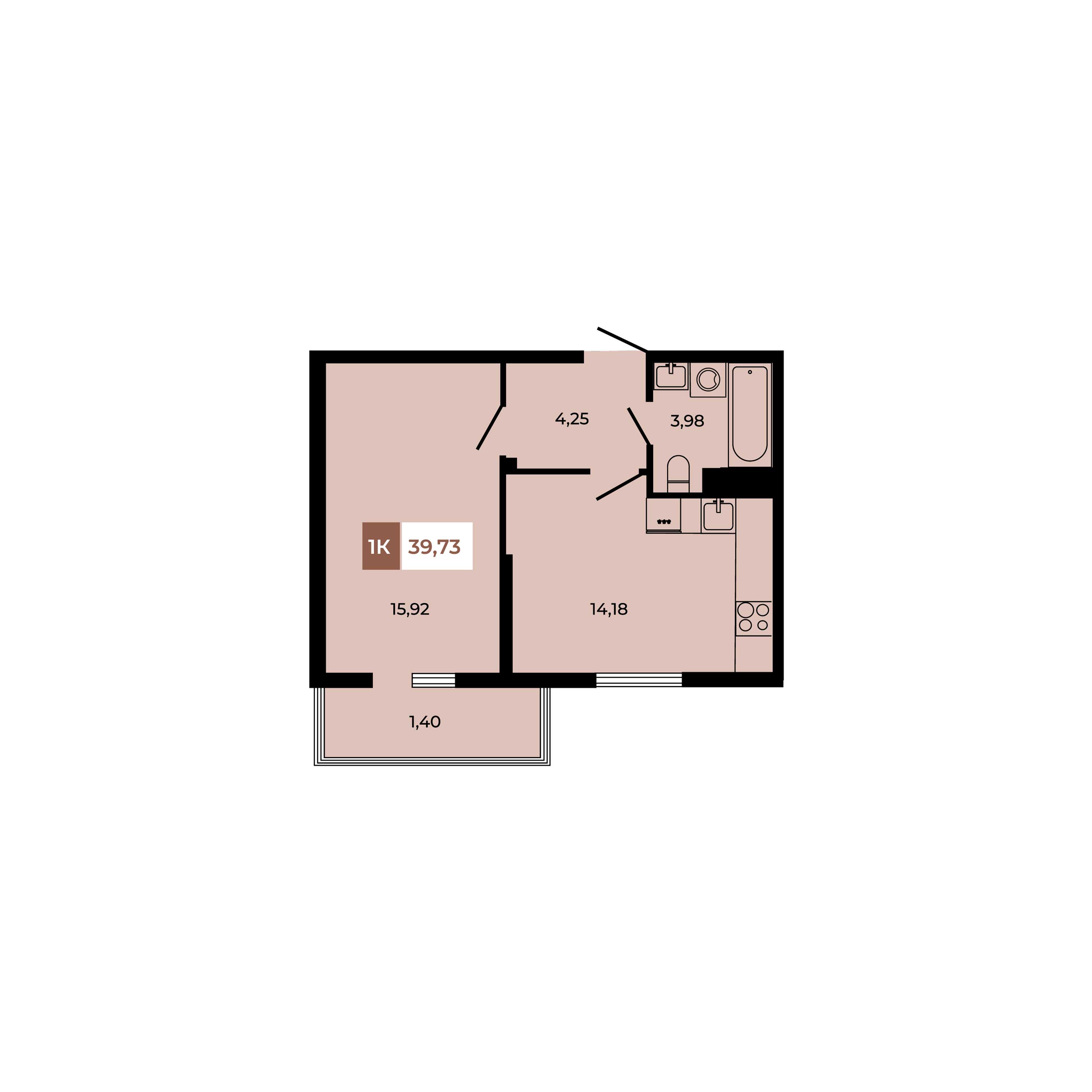 Общая площадь: 39.73м2