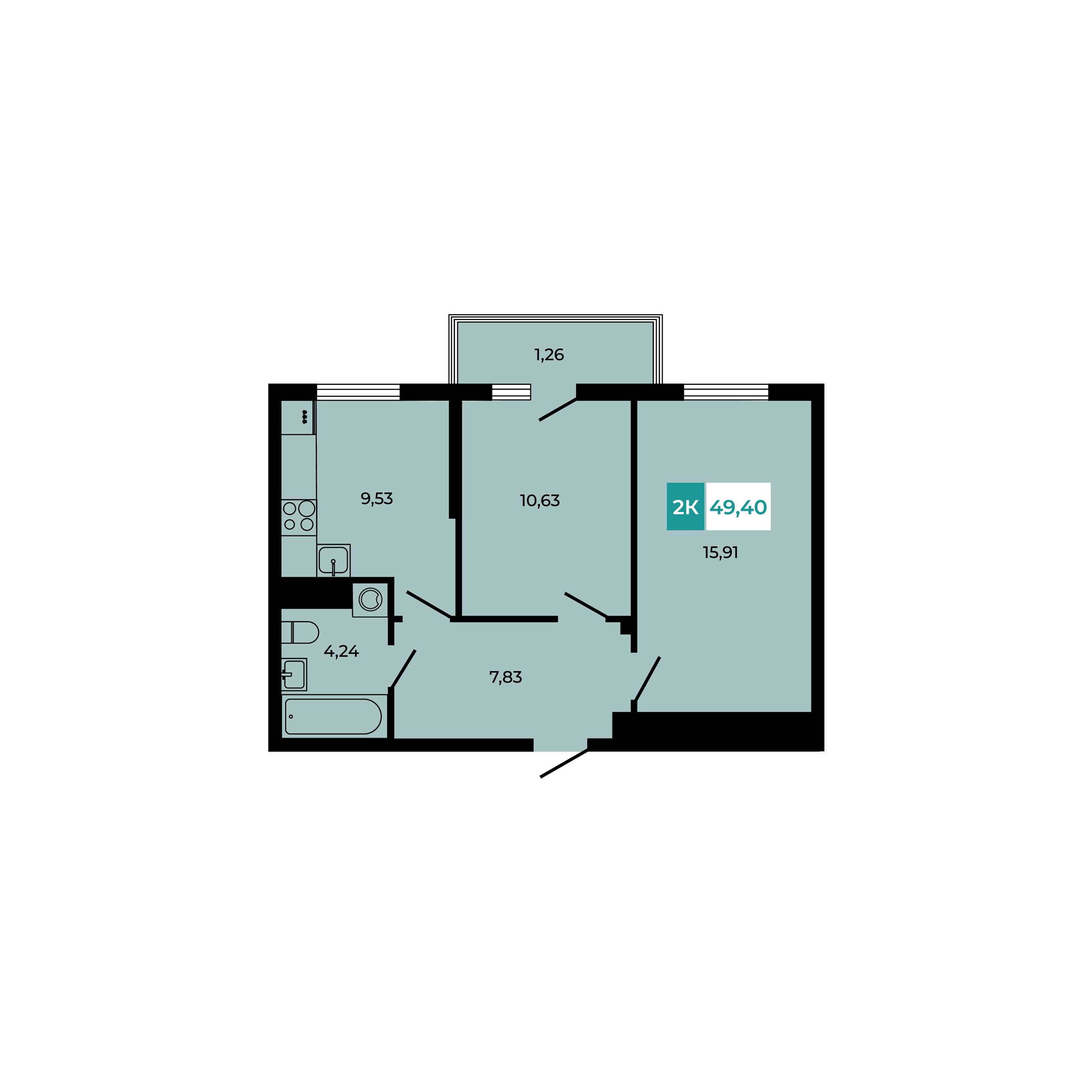 Общая площадь: 49.40м2