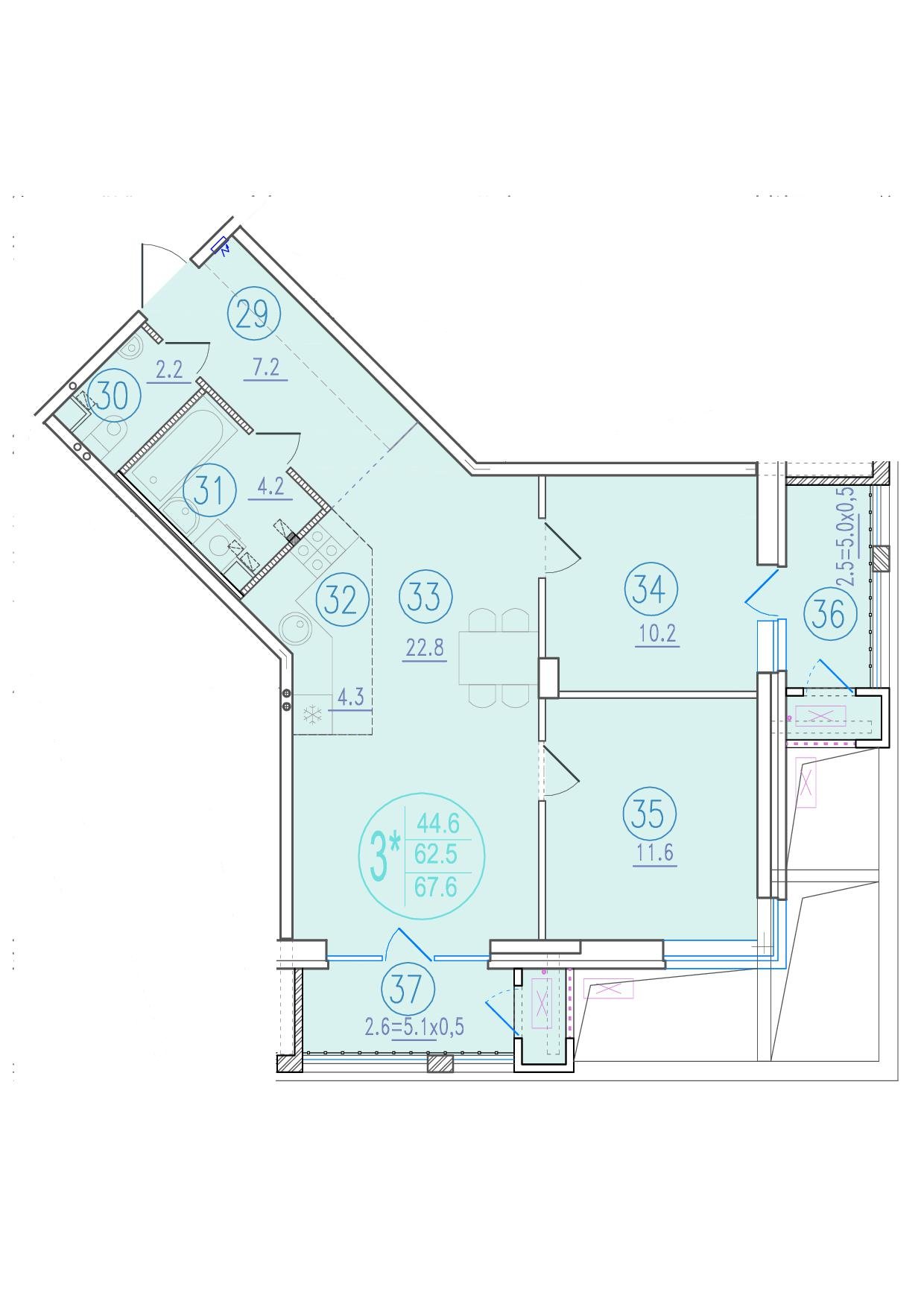 Общая площадь: 67.60м2